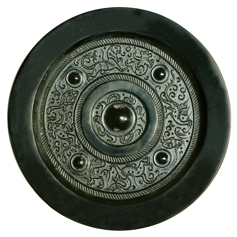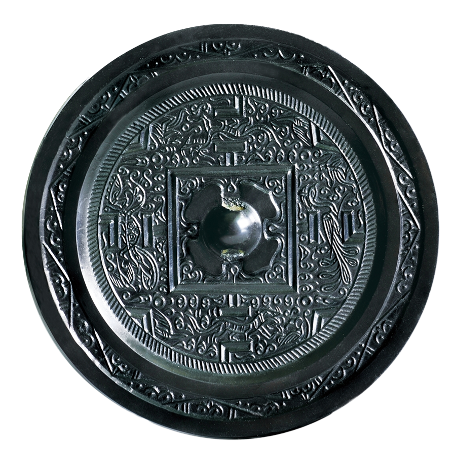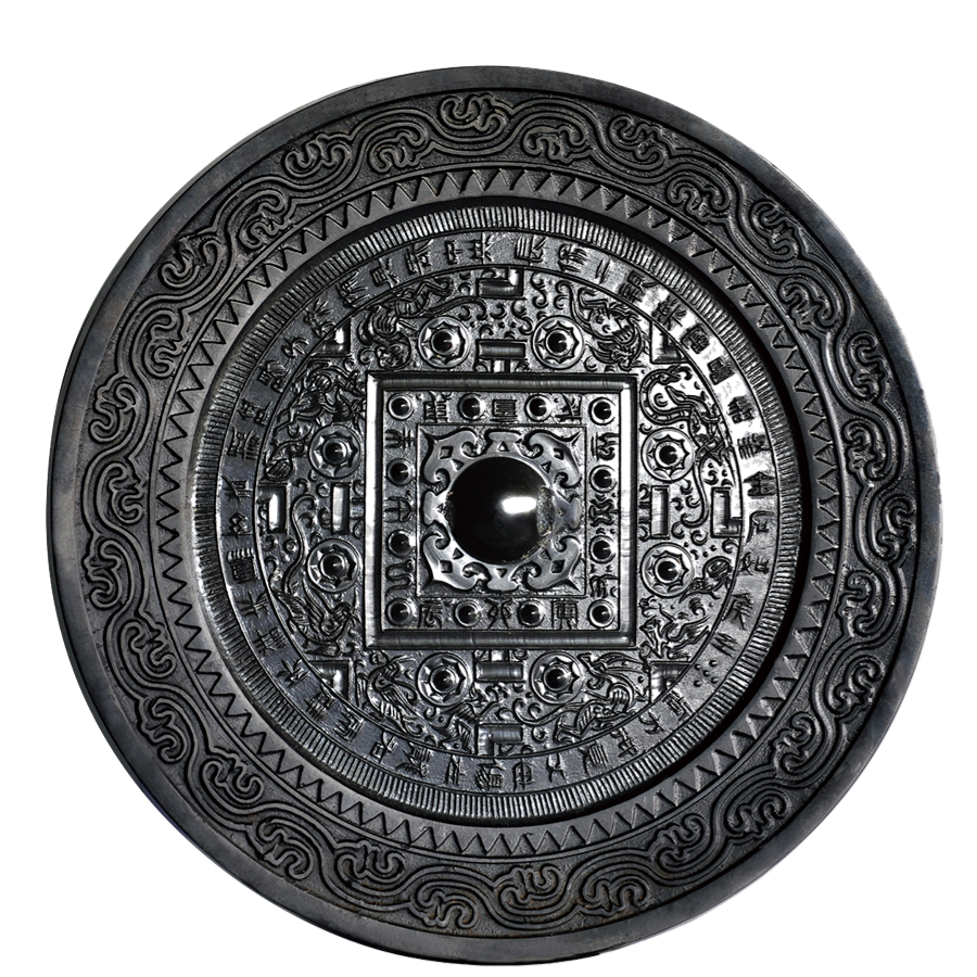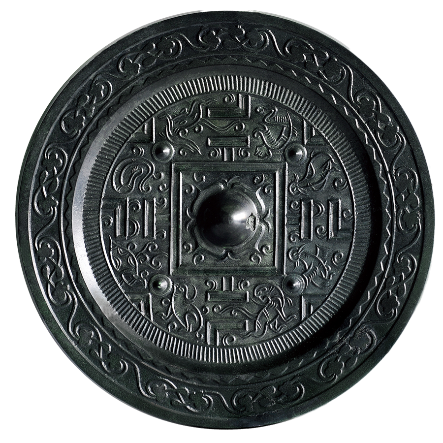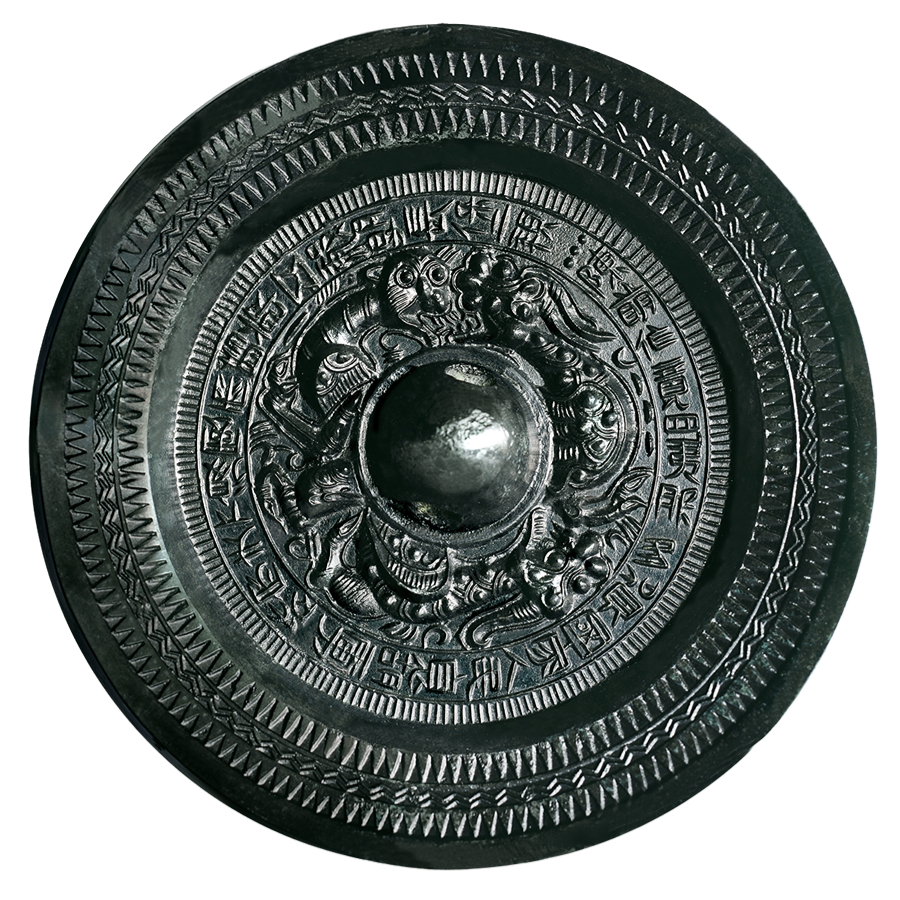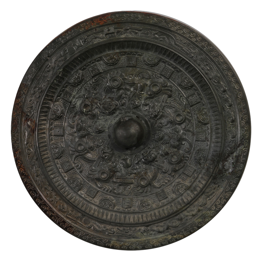 铭文:尚方御竟(镜)大毋伤,左龙右虎辟不祥,朱鸟玄武调阴阳,子孙备具居中央,长保二亲乐富昌,寿敝金石如侯王。