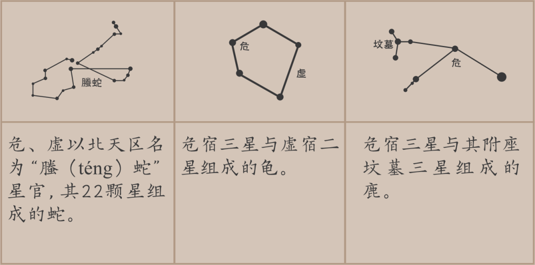 图引自《中国青铜器全集》第16卷图6(文物出版社1998年),《中国天文考古学》图6-33(中国社会科学出版社2017年)危宿三星与其附座坟墓三星组成的鹿