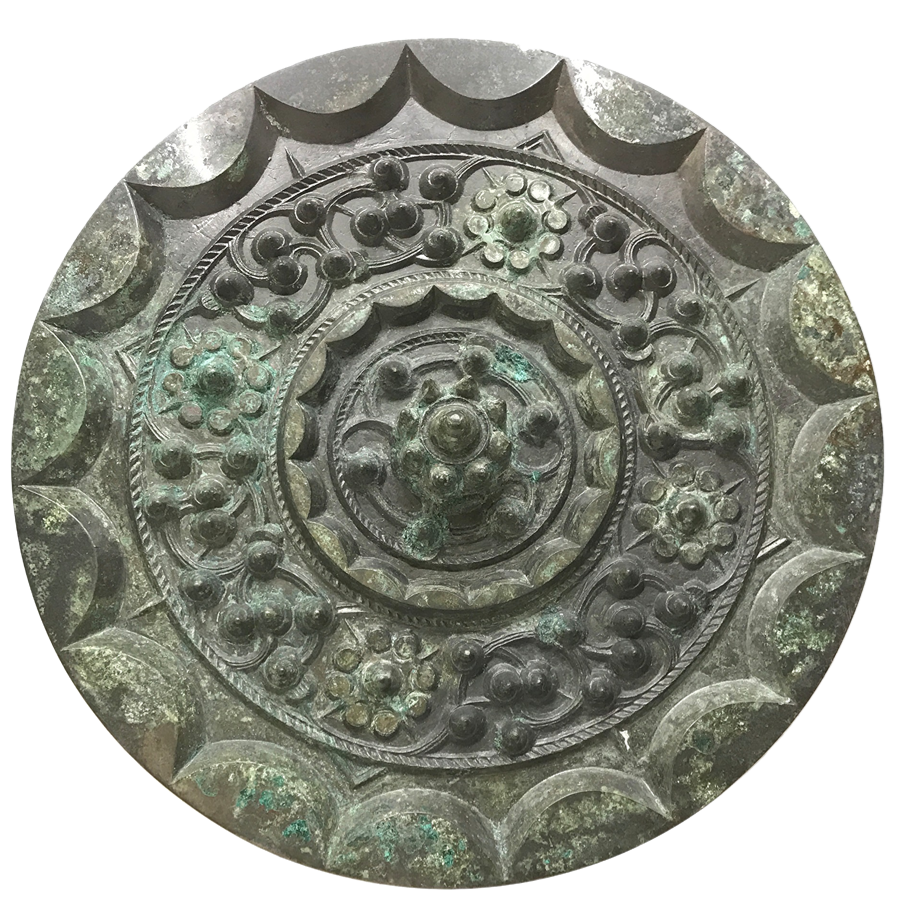 铭文:陈萌作竟(镜)四夷服,多贺国家人民息,胡虏殄灭天下复,风雨时节五谷熟,长保二亲。