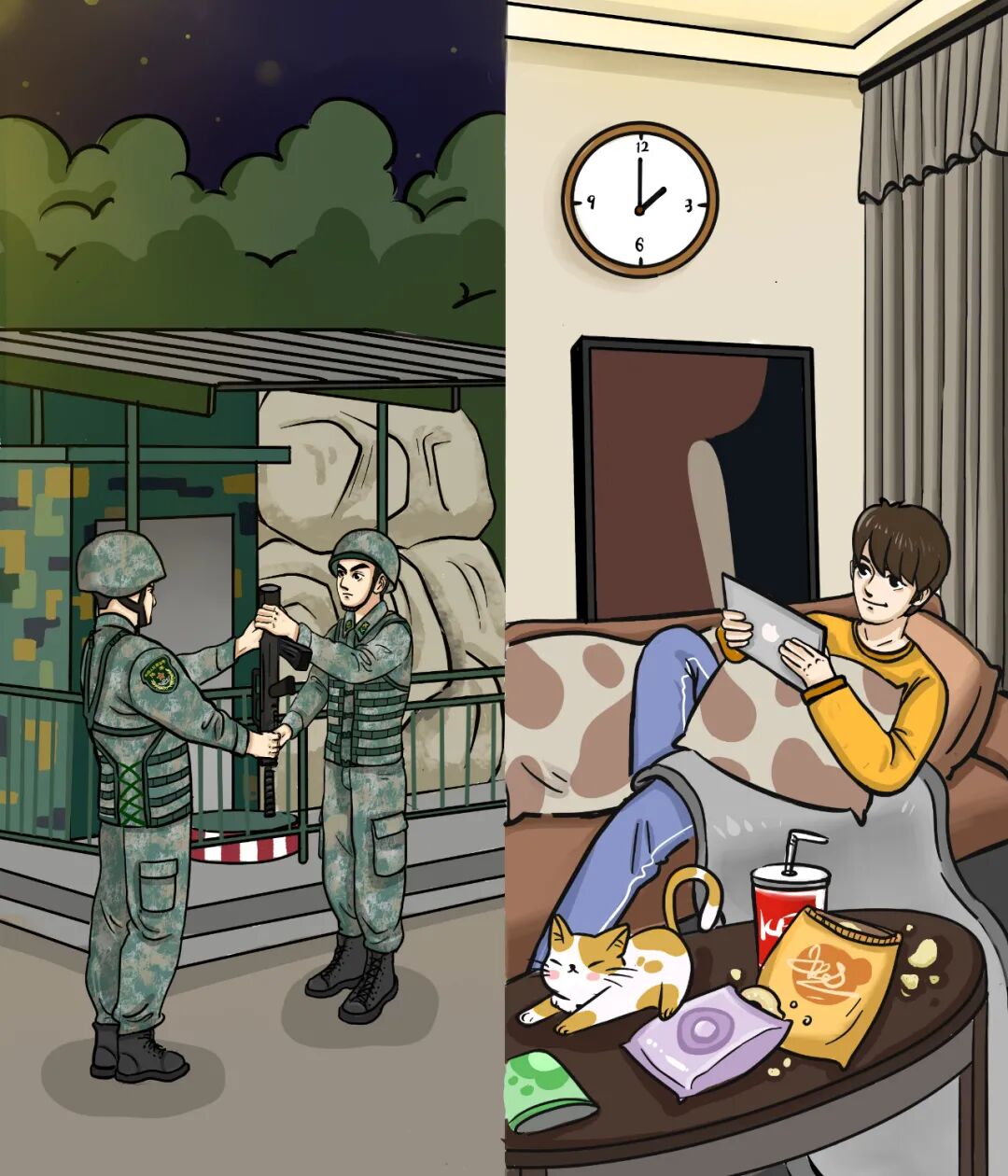 他与战友正在岗哨交接
