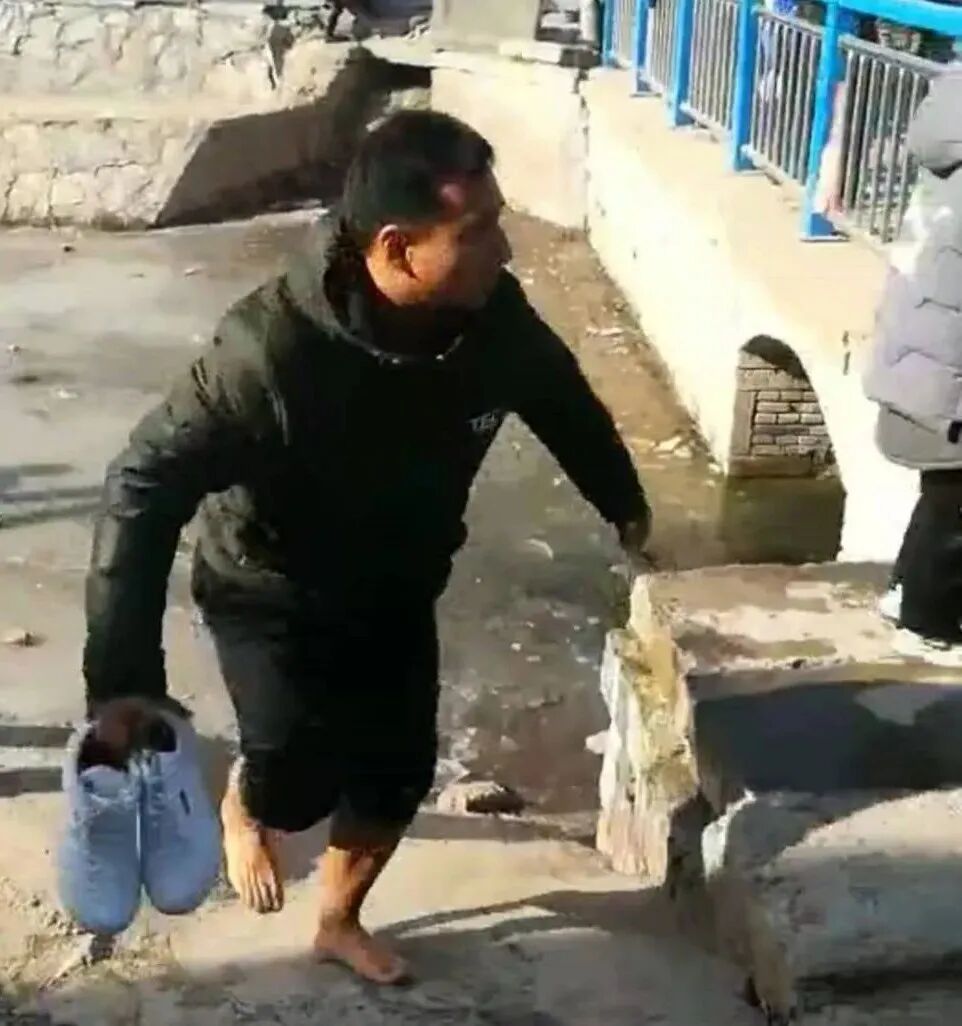脱掉鞋袜毫不犹豫跳入冰冷刺骨的水中