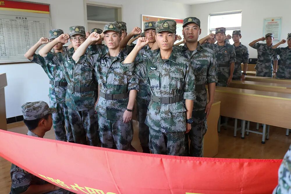 该连官兵高举右拳,郑重宣誓