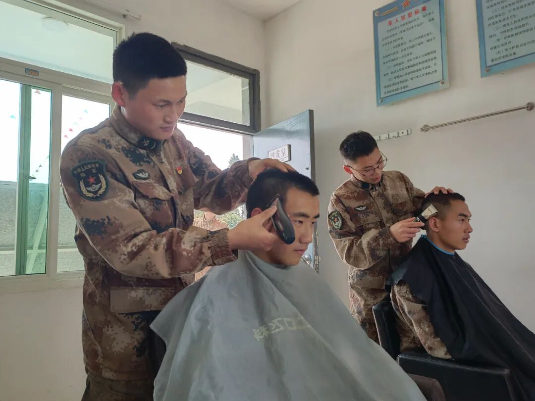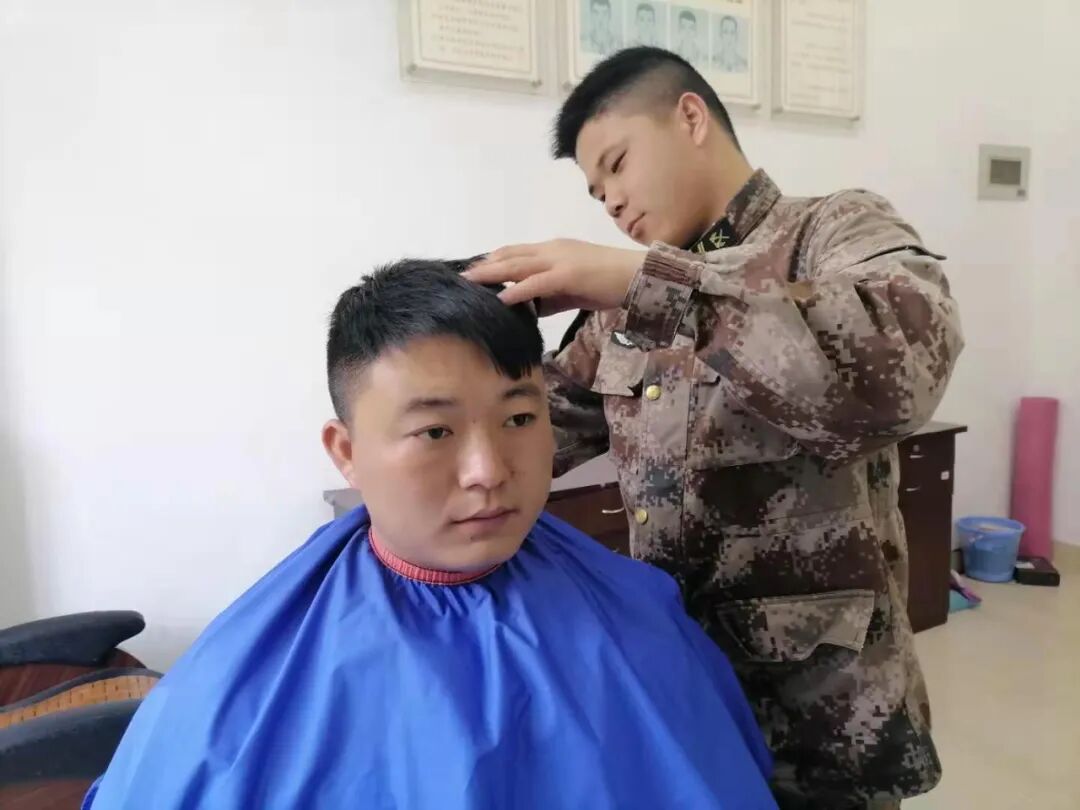 ▲和战友一起帮厨