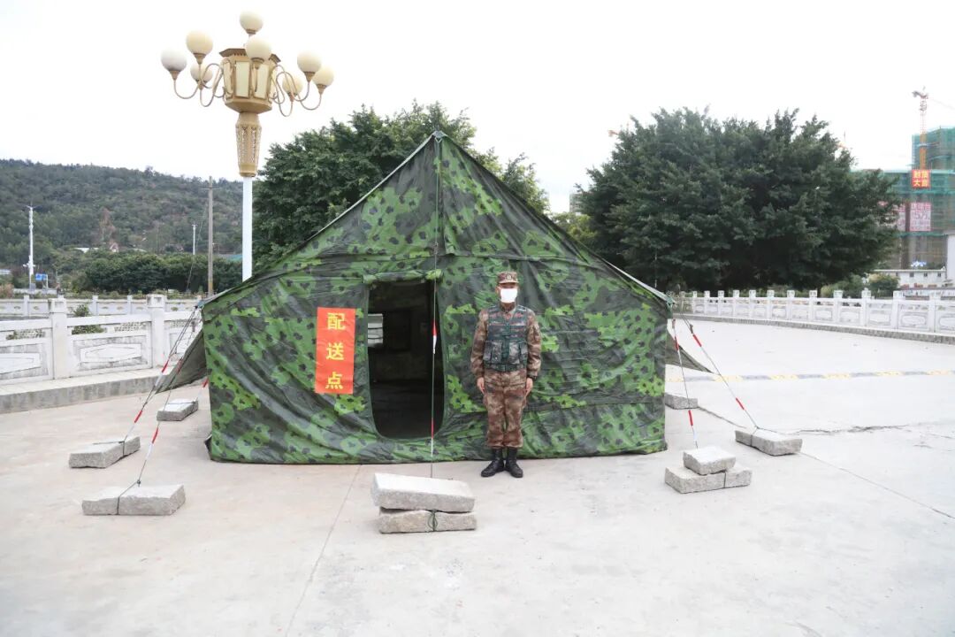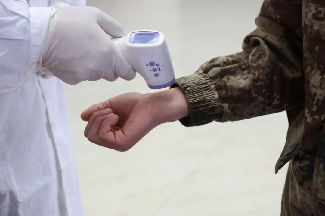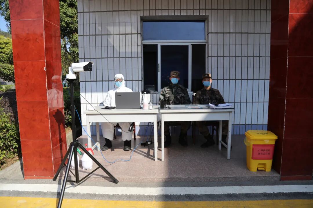 ▲为外出归来的战友测量体温