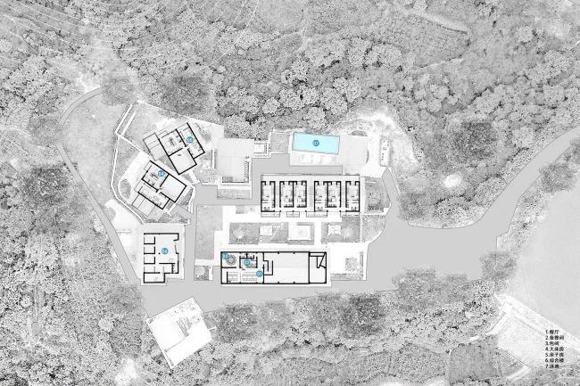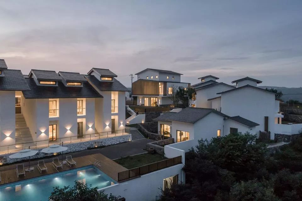 大乐之野 · 谷舍精品民宿选址于柿林古村,室内设计由DAS Lab设计完成。该项目地形是典型的高山台地,四周高山峡谷,中间岗连坡平。俯瞰周边景观,独特的地理位置使场地内的自然景观丰富多样。建筑群的布局是类似”卫城“的设计手法,保证了内部活动空间的安全感。22间客房的开窗均朝向外围,留给室内的是直面外部的自然景观。