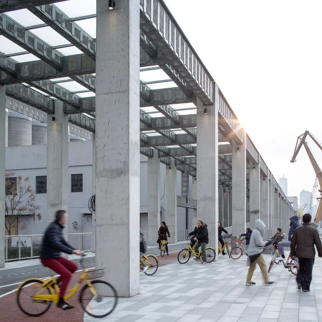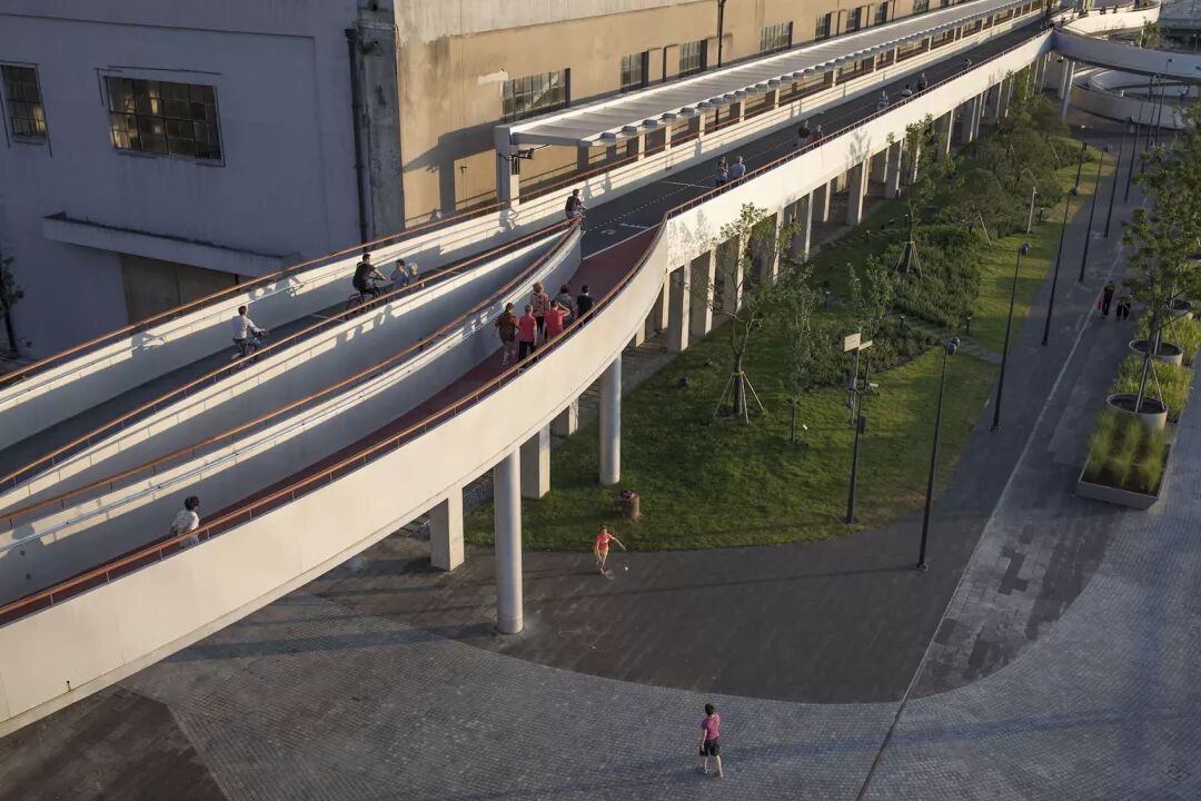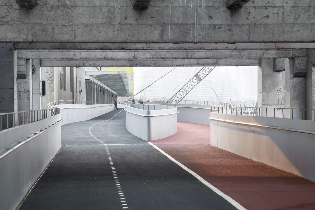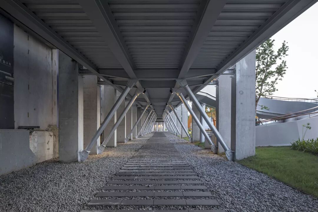呼应“艺术+日常+事件”主题,建筑师在设计伊始就采用“新旧景观共生”的策略,在保留原有产业遗存空间特质的前提下,置入新的活动空间。