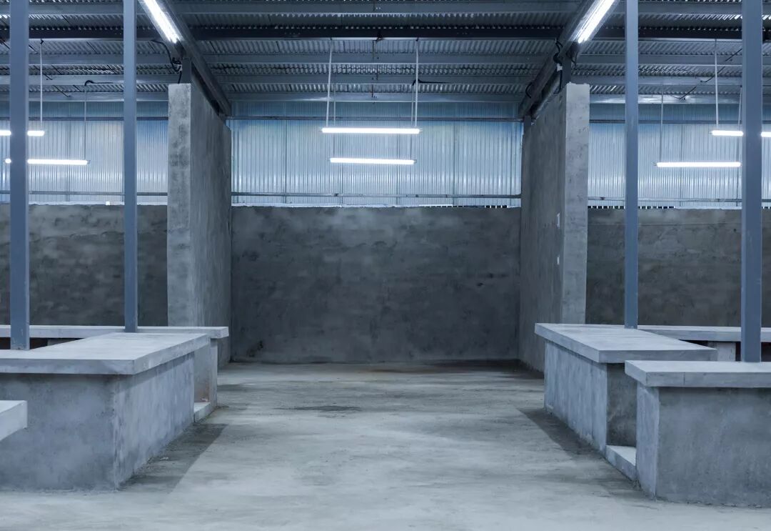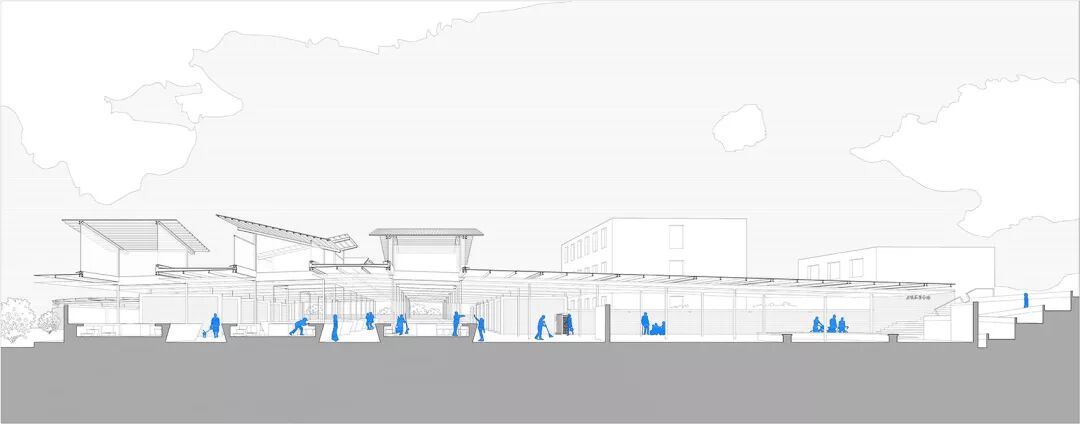 此外,场地原有的高差被直接保持下来,整个菜场基座呈1:60的坡度,在减少土方量的同时,也方便将来运营中的清洗工作。