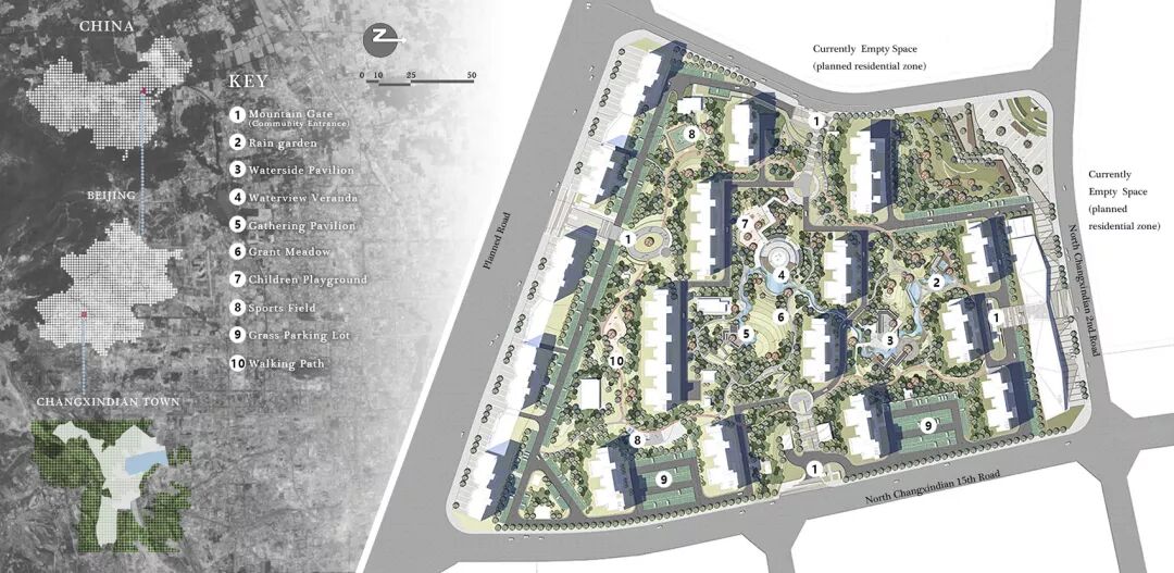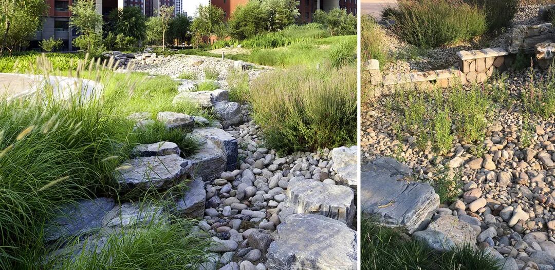 基于北京地区夏季暴雨且常年地下水补给不足的情况,设计师利用低影响开发理念,将海绵城市的理念融入社区景观中,打造了北京最大的社区雨水花园。
