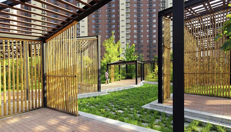 不同尺度的竹廊,唤起场地记忆