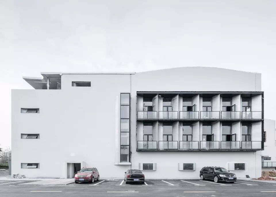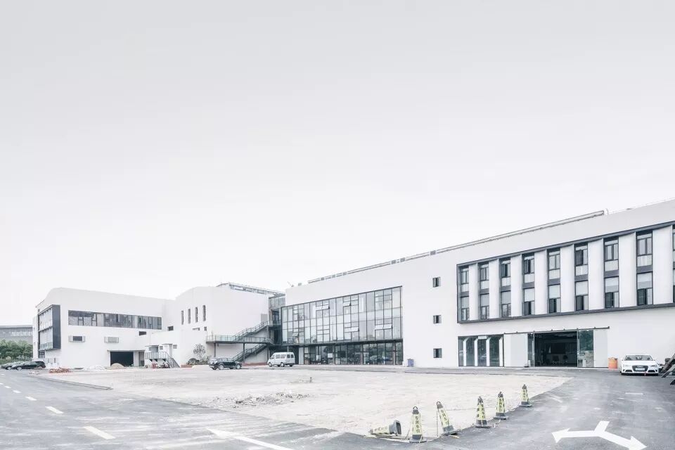 本案对上海嘉定京沪高速旁一组上世纪90年代的工业车间和辅楼进行了全面的改造与更新。方案取“素胚瓷片”为概念,抽离出来的片状弧面形成了建筑外立面的原型母题和主展厅的基本语汇。