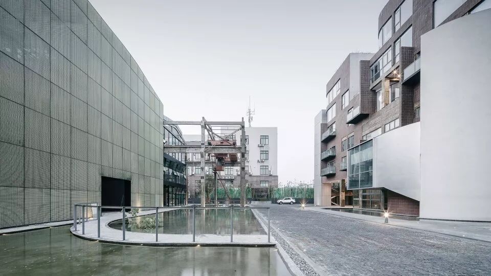 设计保留了原有的建筑结构和场地关系,但通过内部钢结构夹层的增量,原空间的工业属性被赋予了新的艺术氛围及业态内容。封闭而进深的庞大车间体量被打开,新置入的景观连廊和玻璃天棚让园区的前后场地得以被连接,室内空间得以更好地被入驻企业及人群所使用。
