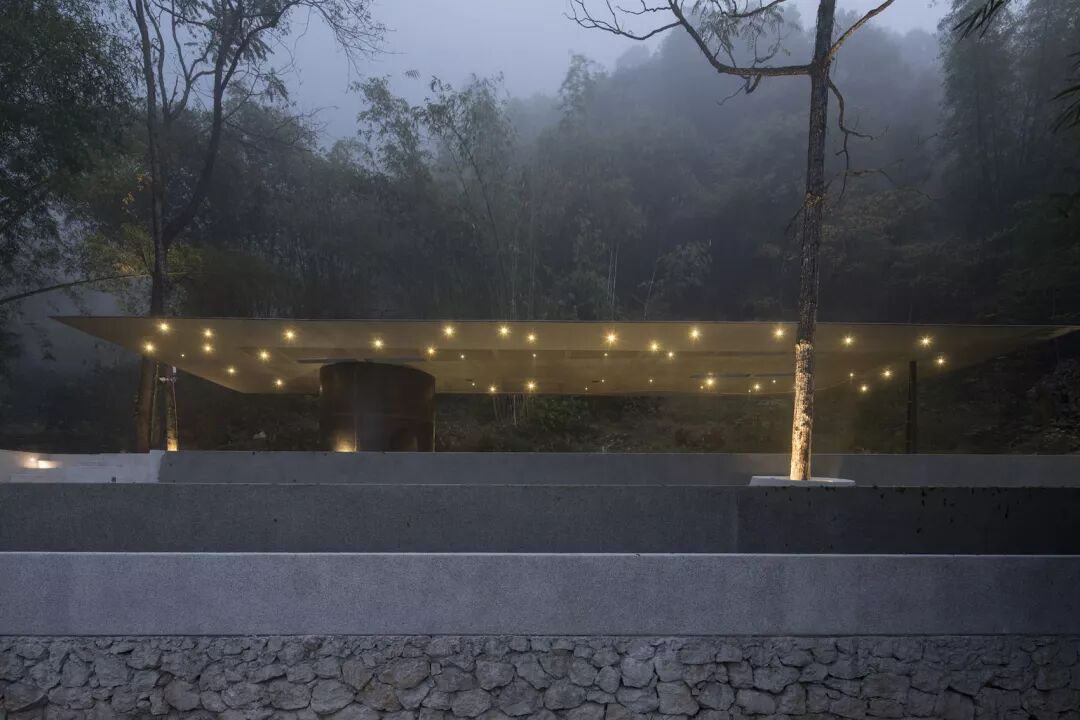建筑师通过对环境的细腻捕捉,感知光影,微风及风景,选址布局巧妙融合周边环境。地面的曲线边界顺应山石走向,嶙峋的喀斯特地貌孤石近亭散置,成为近距离感受大地生命气息的景观。瑜伽亭以极简的方式向自然与古典建筑致敬。