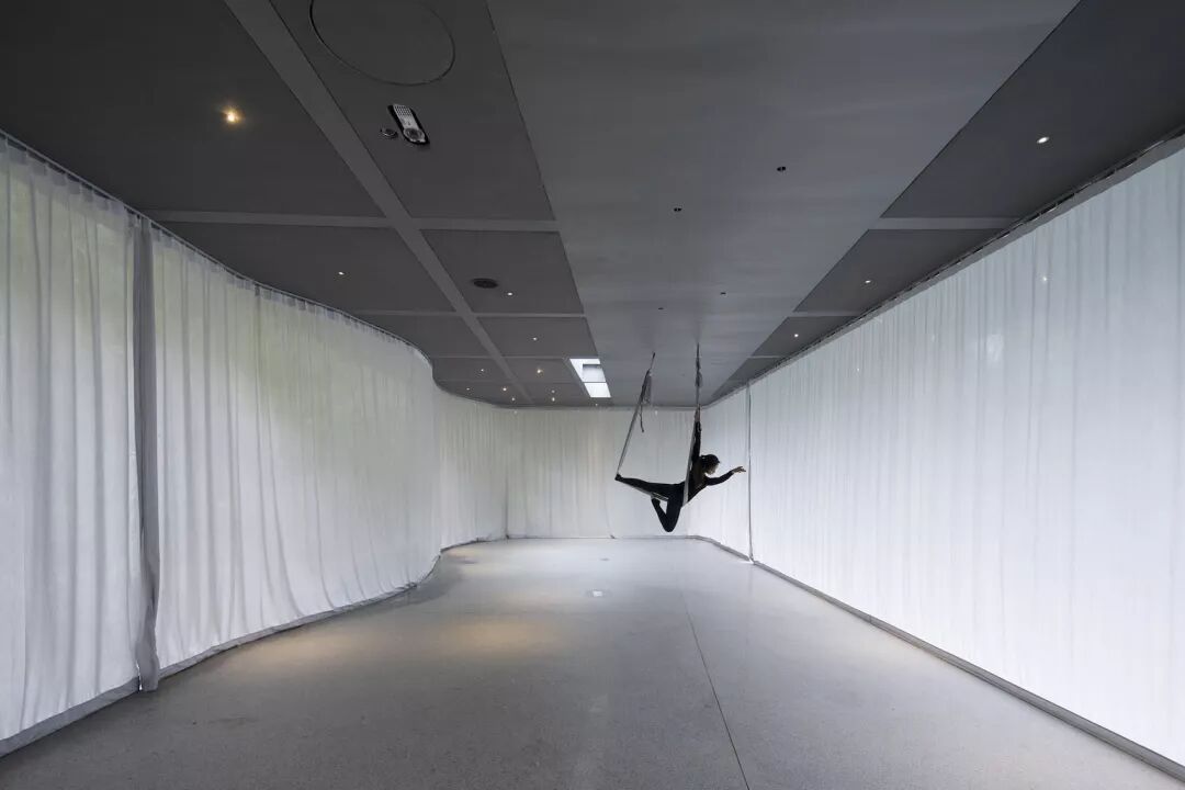 ▼布帘拉开时形成敞开于自然的瑜伽场地 ©田方方