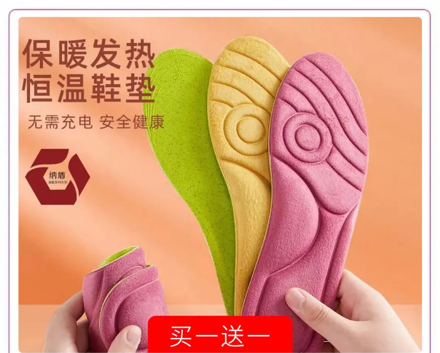2、自发热、免充电,穿上3分钟升温,脚下踩了个小太阳,从脚心暖到全身。