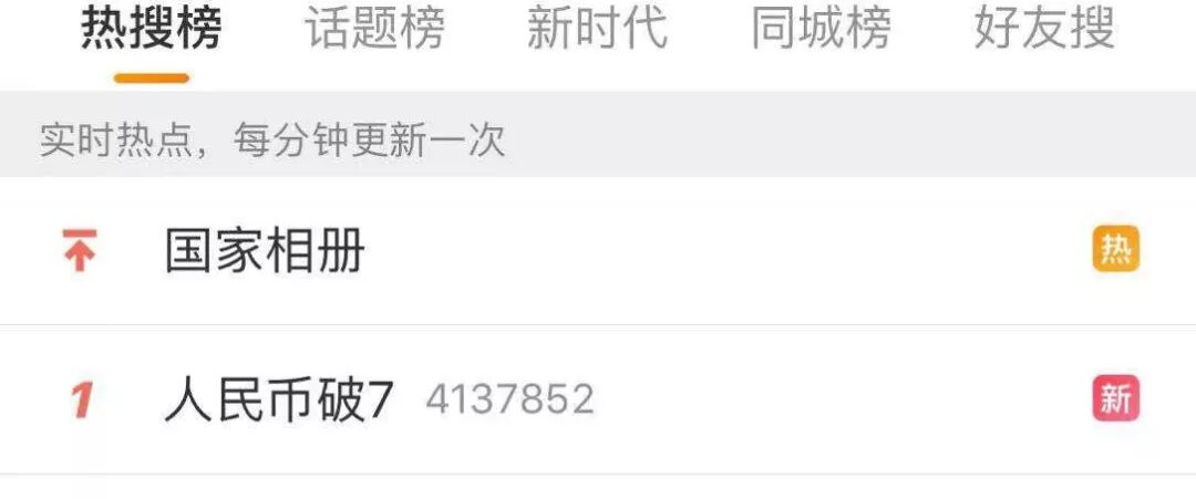 没有一丝丝防备,今天人民币在岸、离岸汇率双双破7!瞬间刷屏了,甚至上了微博热搜榜的第一。
