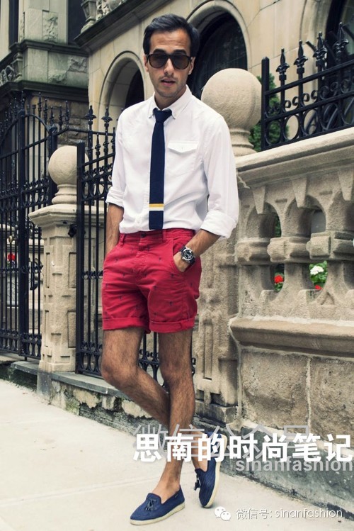 2、如果你身材不错,还可以挑战一下彩色短裤。