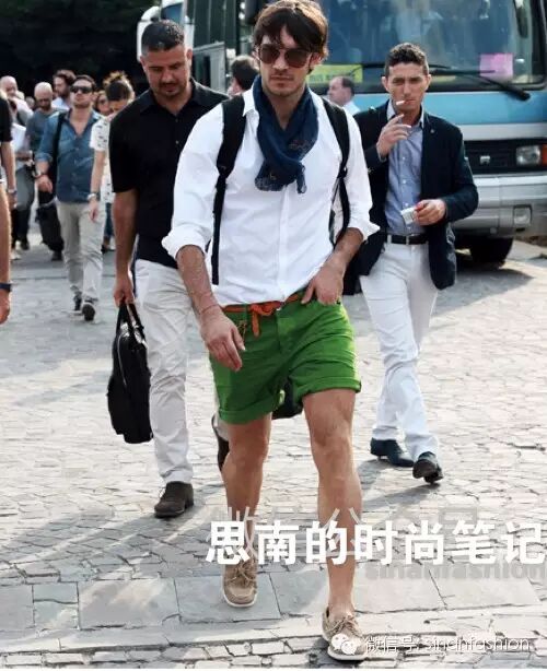 7、不知道下面这张图的短裤材质是不是麂皮,不过因为今年流行六七十年代的风格,所以麂皮元素还是值得一试。