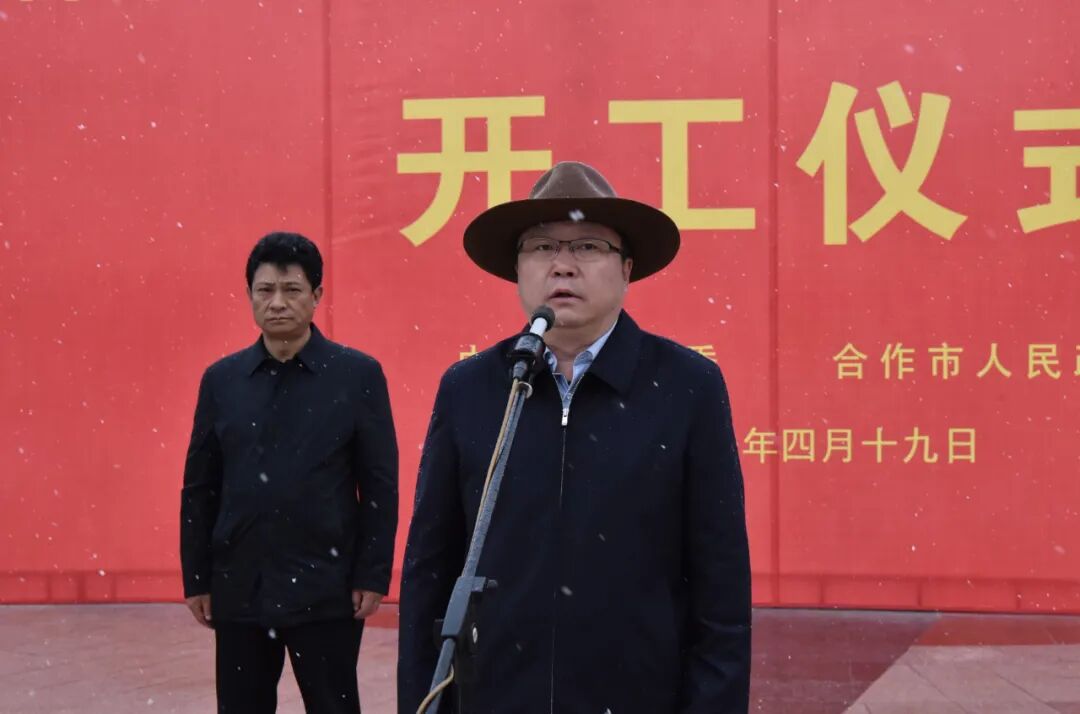 州委常委、合作市委书记刘永革宣布合作市2021年城市重点项目集中开工;市委副书记、市长李新平致辞。