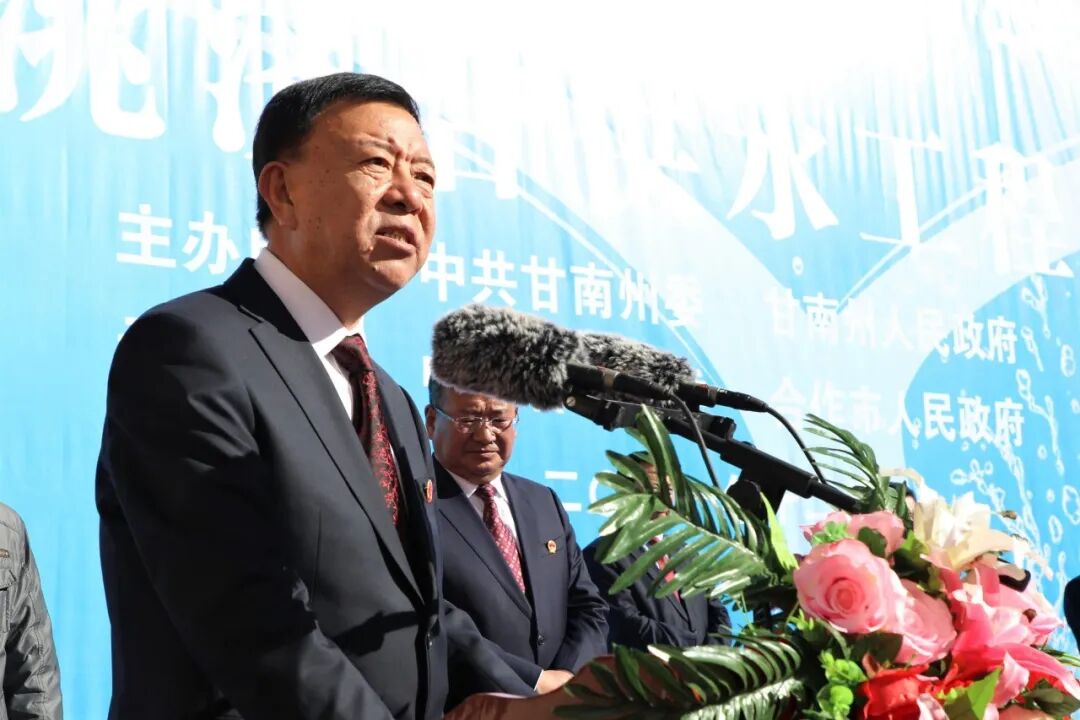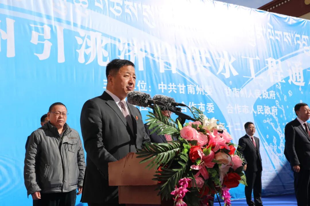 俞成辉代表州委、州政府向引洮济合工程建成通水表示热烈的祝贺,向长期以来关心支持甘南改革发展特别是水利建设的省上有关部门表示衷心的感谢,向为引洮济合工程建设付出辛勤劳动的同志们致以崇高的敬意!他指出,引洮济合工程的正式通水,是全面贯彻以人民为中心发展思想的务实之举,也是不断改善人民生活品质的德政工程,更是甘南水利建设史上的一件大事喜事,兑现了州委、州政府向全州人民作出的郑重承诺,谱写了我州跨县域水资源配置的新篇章,在甘南水利发展史上描绘了浓墨重彩的一笔。这一工程的投入使用,对于进一步改善合作地区各族群众的生产生活条件,加快合作市经济社会持续健康发展必将产生积极的促进作用。![]()