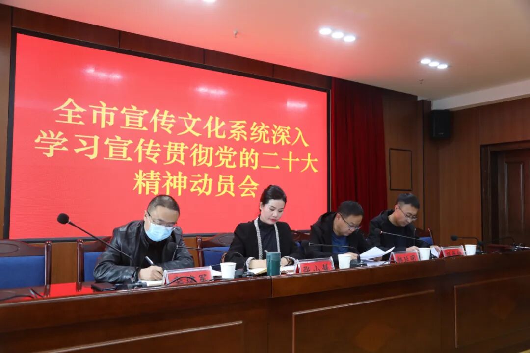 会议强调,一要提高政治站位,充分认识学习贯彻党的二十大精神的重大意义。学习宣传贯彻党的二十大精神,是当前和今后一个时期的首要政治任务,要深刻理解坚持人民至上的价值理念,更加紧密增进党同人民群众的血肉联系,把准新时代宣传工作的大背景、新要求,切实把力量凝聚到党的二十大确立的目标任务上来,进一步统一思想、凝聚共识,自觉承担起“举旗帜、聚民心、育新人、兴文化、展形象”的宣传使命,以高度的政治责任感和使命感,激发全社会奋进新征程、建功新时代的精神动力。二要创新方式方法,迅速掀起学习贯彻党的二十大精神的热潮。宣传文化部门作为宣传宣讲党的二十大精神的排头兵和主力军,要用劲加强对外宣传,用力推进社会宣传、用心做好新闻宣传、用情开展文艺宣传,引领全市迅速掀起学习宣传贯彻党的二十大精神热潮。三要笃定实干,不断开创全市宣传思想文化工作新局面。要切实把党的二十大精神落实到宣传思想文化工作各方面全过程,要压紧压实工作责任,坚决守住安全底线,把准“方向盘”,管好“责任田”,筑牢“防火墙”,全面加强意识形态阵地管理,牢牢掌握意识形态工作领导权管理权话语权。加强宣传思想文化队伍建设,增强“四力”教育实践工作,打造一支“政治过硬、本领高强、求实创新、能打胜仗”的宣传思想文化工作队伍。要坚定信心、振奋精神、锐意进取、奋力作为,努力为建设“青藏之窗·雪域羚城”提供强大的价值引导力、文化凝聚力和精神推动力。(孙娅丽)