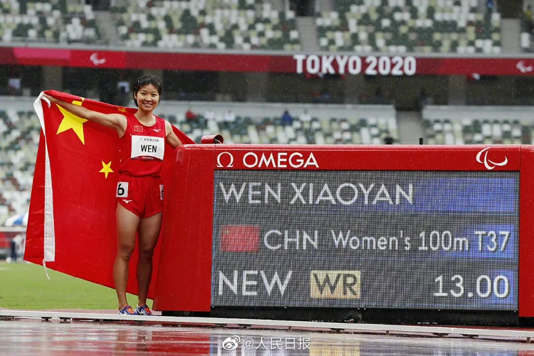 9月2日,2020东京残奥会田径赛场女子100米T37决赛,文晓燕跑出13秒打破世界纪录夺冠,收获本届残奥会个人第3金,另外一位中国选手蒋芬芬以13秒17摘铜。