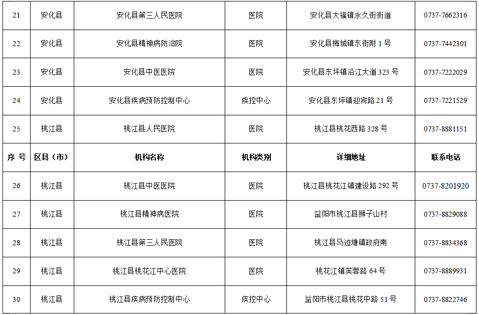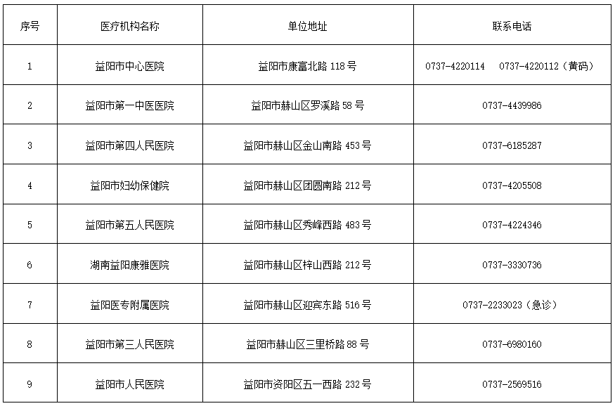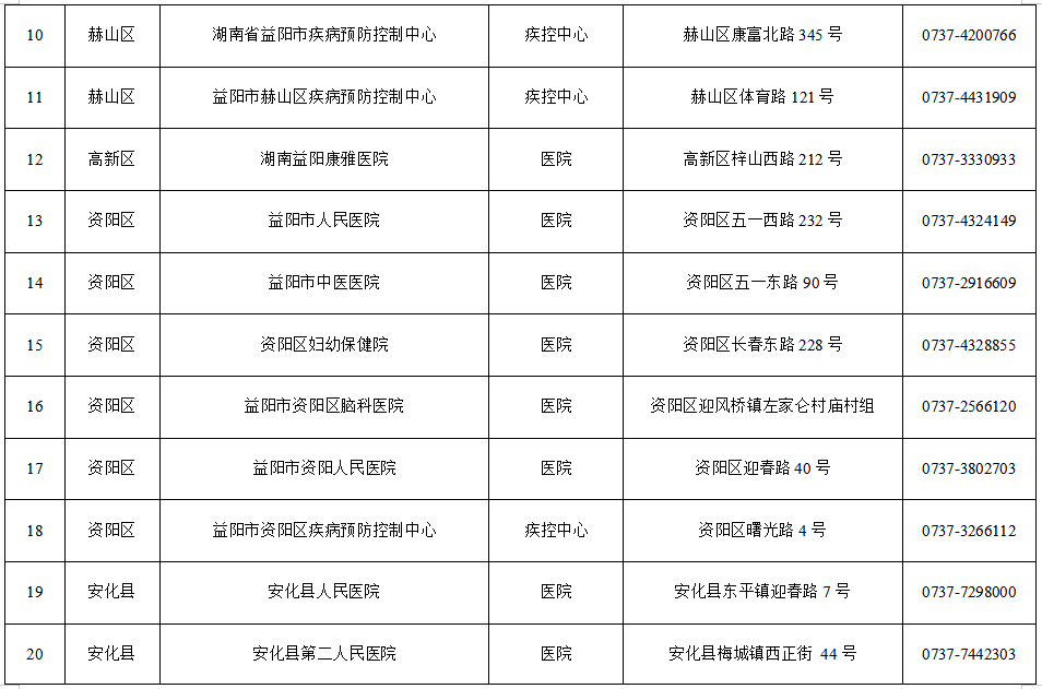 为便利广大市民朋友就近、快捷开展个人防护,益阳市新冠肺炎疫情防控指挥部医疗救治组对全市19家设置发热门诊和39家有核酸检测能力的医疗机构信息进行了汇总,现予以公布。