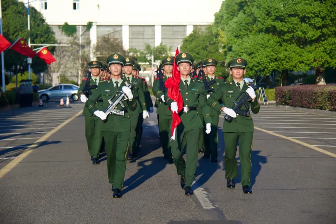 早上8时,武警国旗护卫队队员迈着整齐有力的步伐,护卫着五星红旗走向升旗台。“起来!不愿做奴隶的人们……”雄壮的《义勇军进行曲》响起,升旗手振臂一挥,鲜艳的五星红旗迎风展开,冉冉升起。全体人员肃然而立,一同面向国旗行注目礼,衷心祝愿祖国更加繁荣昌盛,祝愿人民生活更加幸福美好。