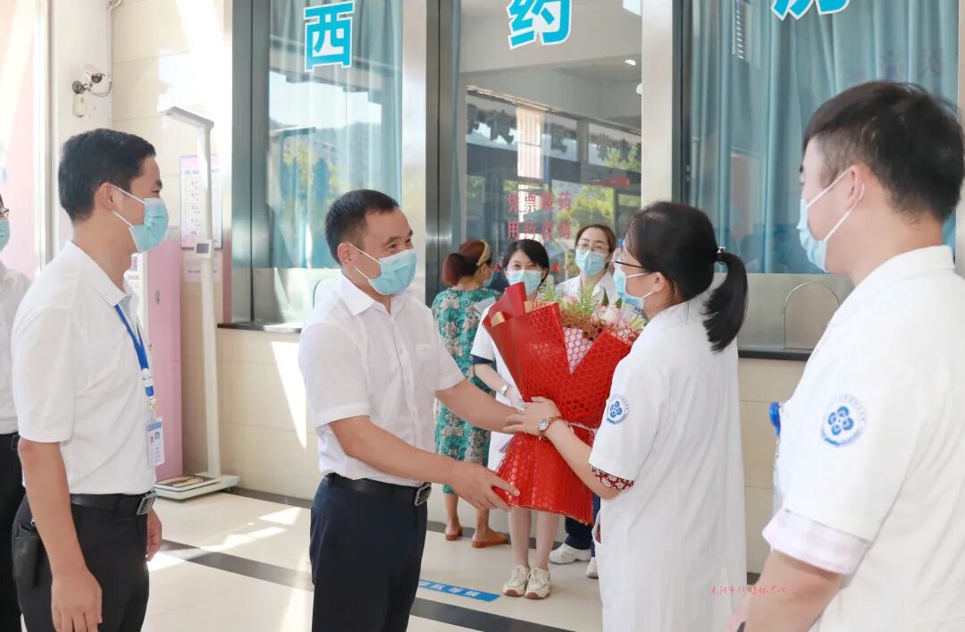 市委副书记潘国东先后来到市中医院、南市街道社区卫生服务中心、花园田氏医院、南马镇中心卫生院,为医务工作者送上鲜花,对他们的辛勤付出、无私奉献表示衷心感谢。潘国东说,白衣天使是抗疫一线最美的逆行者,希望全市广大医务工作者始终秉承医者仁心、强化使命担当,为守护人民群众身体健康作出更大贡献。