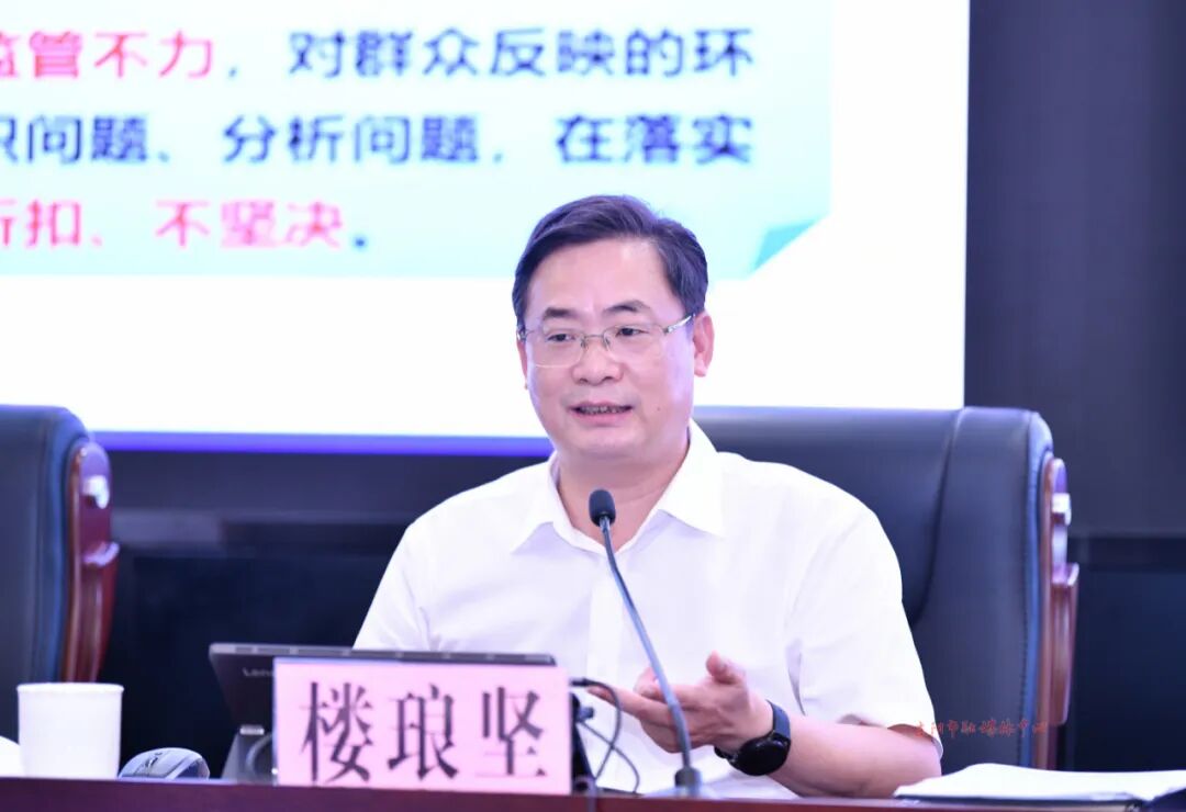 市委书记楼琅坚讲话,黄胜可、朱志杰、方宪文、潘国东、柳尊科、卢旭萍、何浩亮、张伟钢、陈国荣、甘庆富等市领导参加会议。