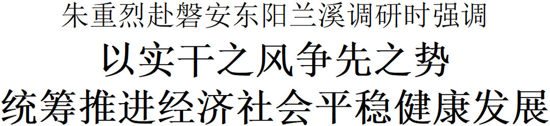 8月22日至24日,金华市委书记朱重烈先后赴磐安、东阳、兰溪三地,实地调研企业生产、项目建设、防汛抗旱、山区共富等工作,强调要围绕“疫情要防住、经济要稳住、发展要安全”三件大事,坚持人民至上,精准破解难题,以实干之风、争先之势,一体推进稳进提质、除险保安、变革重塑,夯实共同富裕基层基础,统筹推进经济社会平稳健康发展,以优异成绩迎接党的二十大胜利召开。