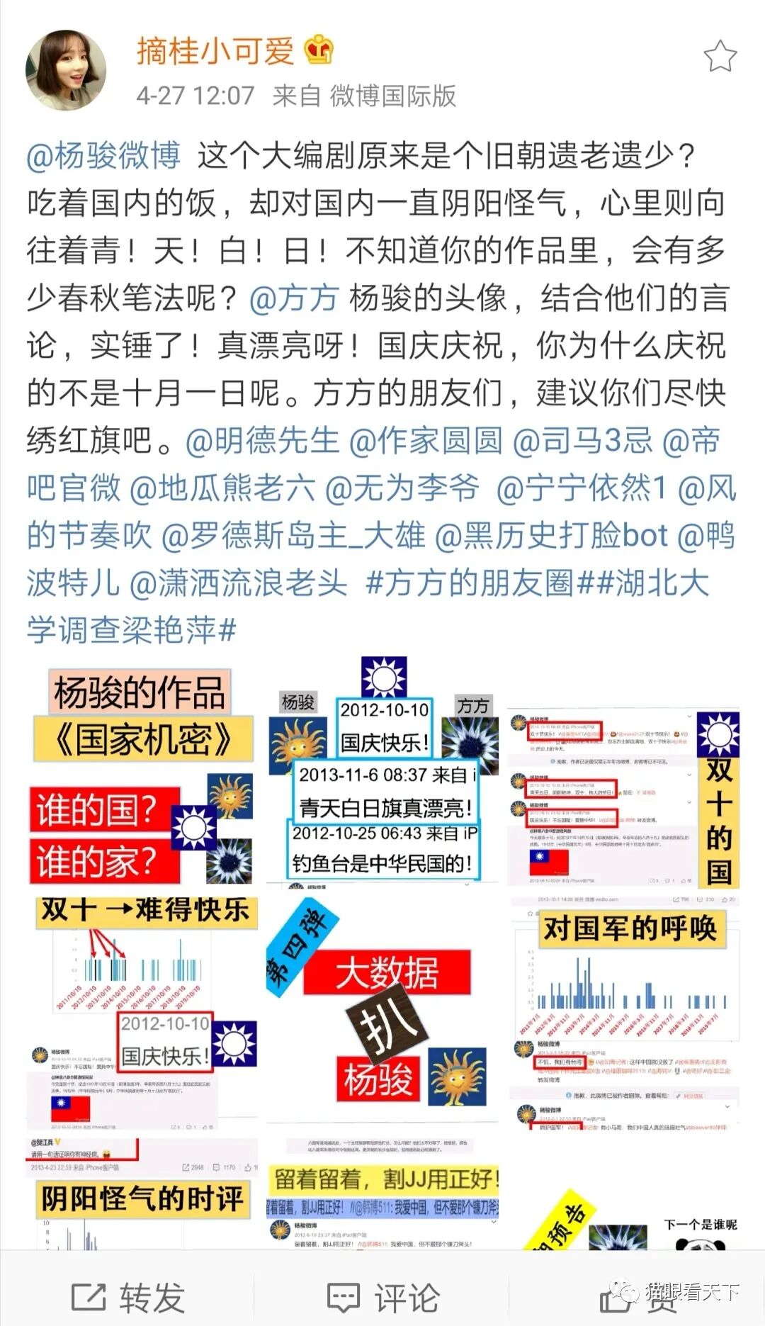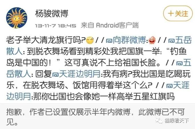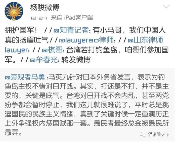 猫眼看天下也就呵呵了,现在知道不要给西方媒体递刀子了?某方发表黑色日记、在西方出版的时候的时候,你们咋不说这话的呢?新民周刊的一个小编因为说了一句让某方不高兴的话就被撤换,你们咋不提“君子不以言废人”了呢?双标耍得挺精致啊!跟谁学的?