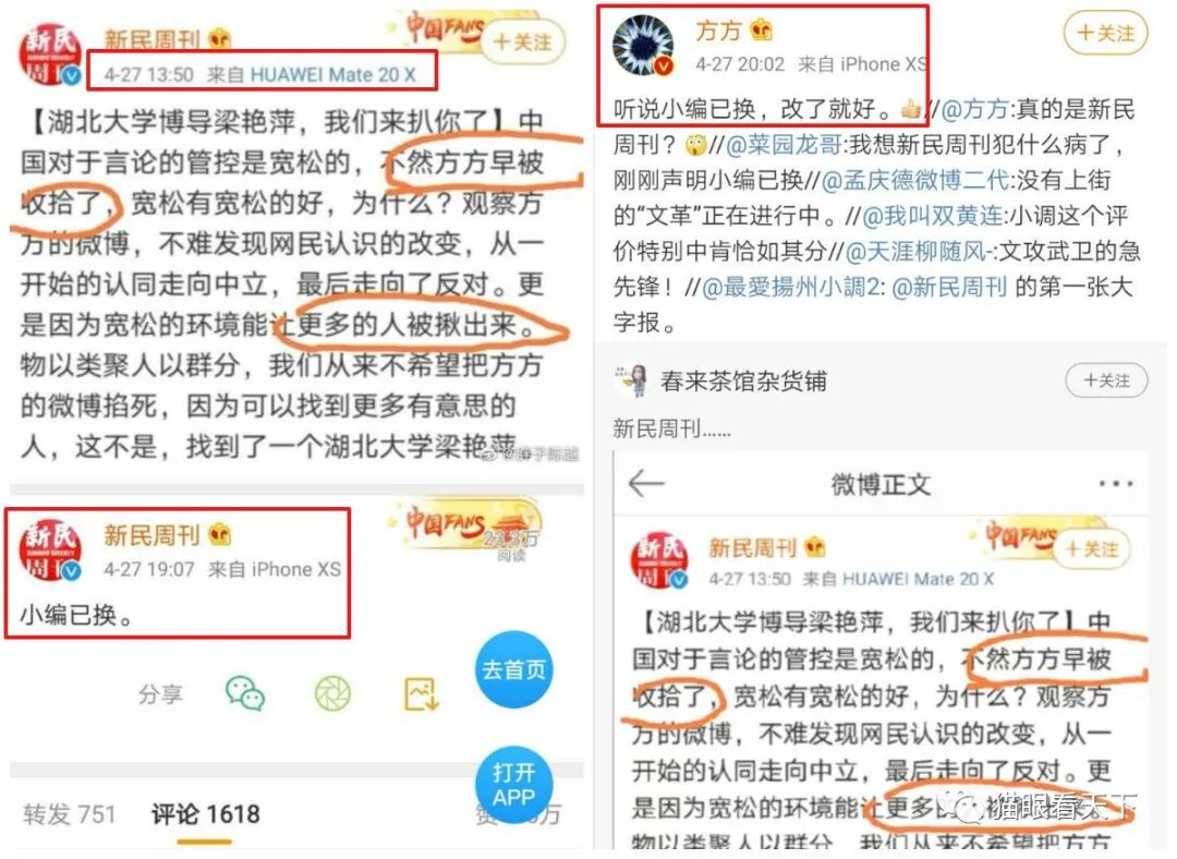 看到湖北大学要对梁某人进行调查,一些同类开始恐惧了,连续发布帖文,指责这是因言获罪,打击不同观点,认为即使有些话不妥,但“君子不以言举人,不以言废人”,更不应该给西方媒体递刀子云云。