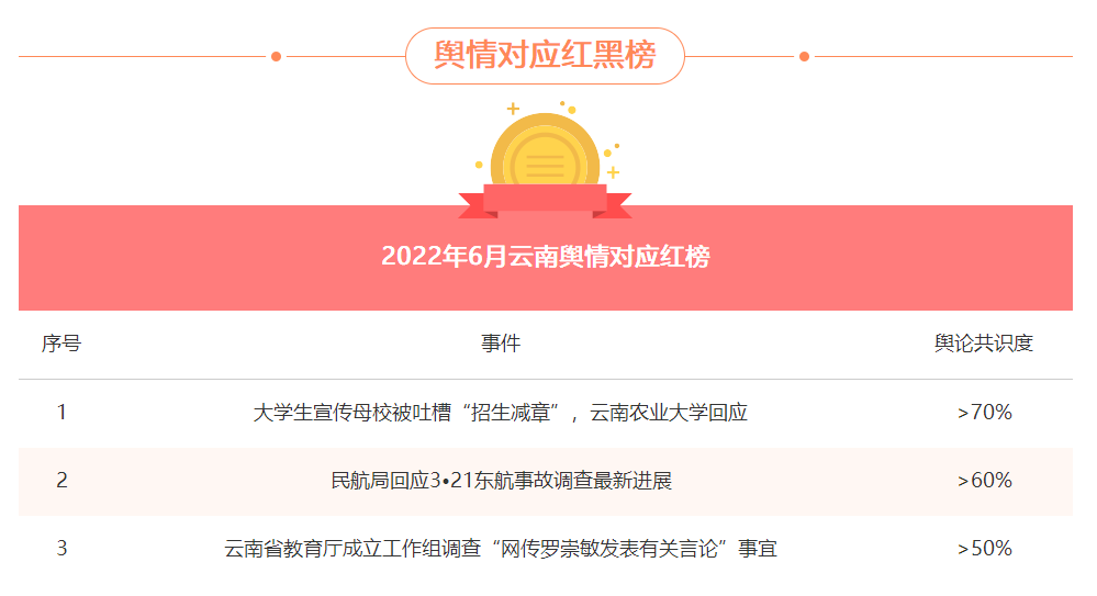 7月12日,云南网推出2022年6月“云南舆情地图”,对6月云南热点事件、主题报道、涉事领域分布、舆情应对红黑榜等进行梳理盘点。