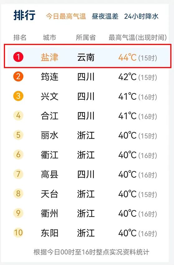 连续两天“称霸”高温榜首