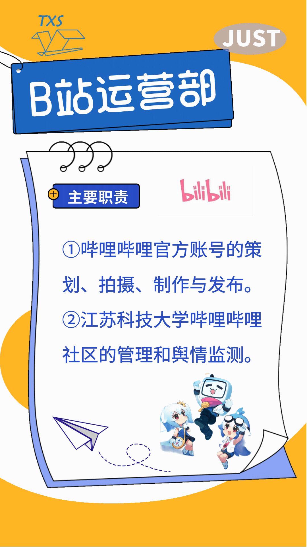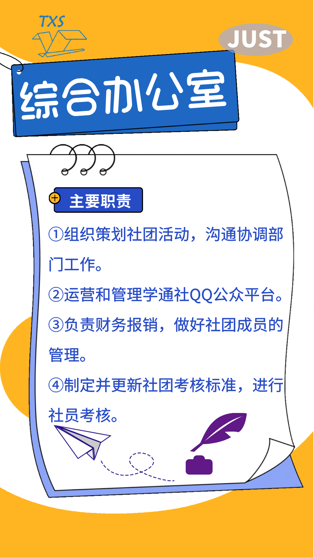 学通社下设综合办公室、文创部、新闻采编部、微信编辑部、媒体运营部、短视频部、B站运营部、视觉设计部八大部门,我们是一个分工明确、严谨活泼、团结友爱的团队,文能撰稿编辑,武能摄影做设计,在这里,我们一起讲好科大故事、传播科大声音、弘扬科大文化、传承科大精神。