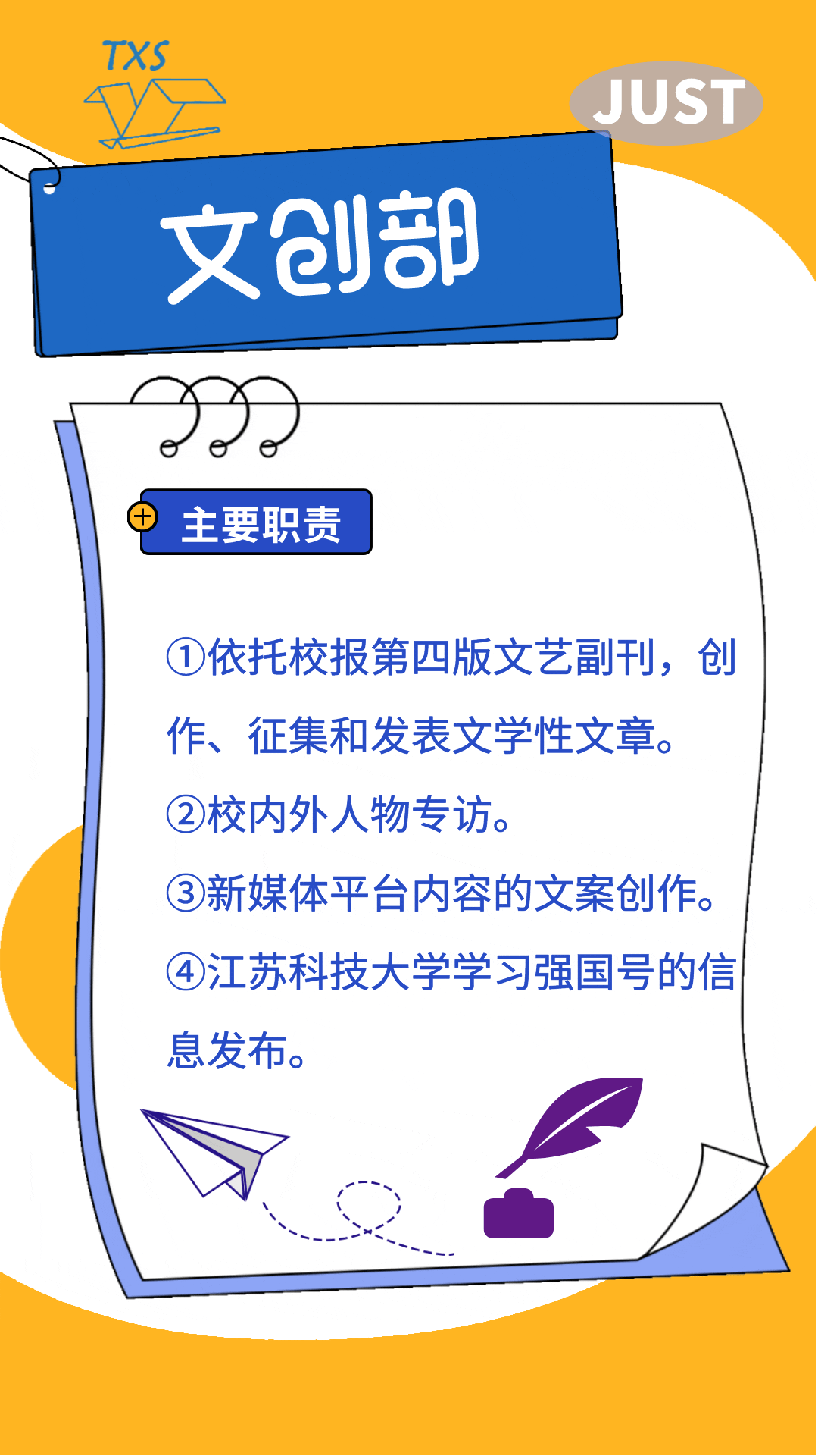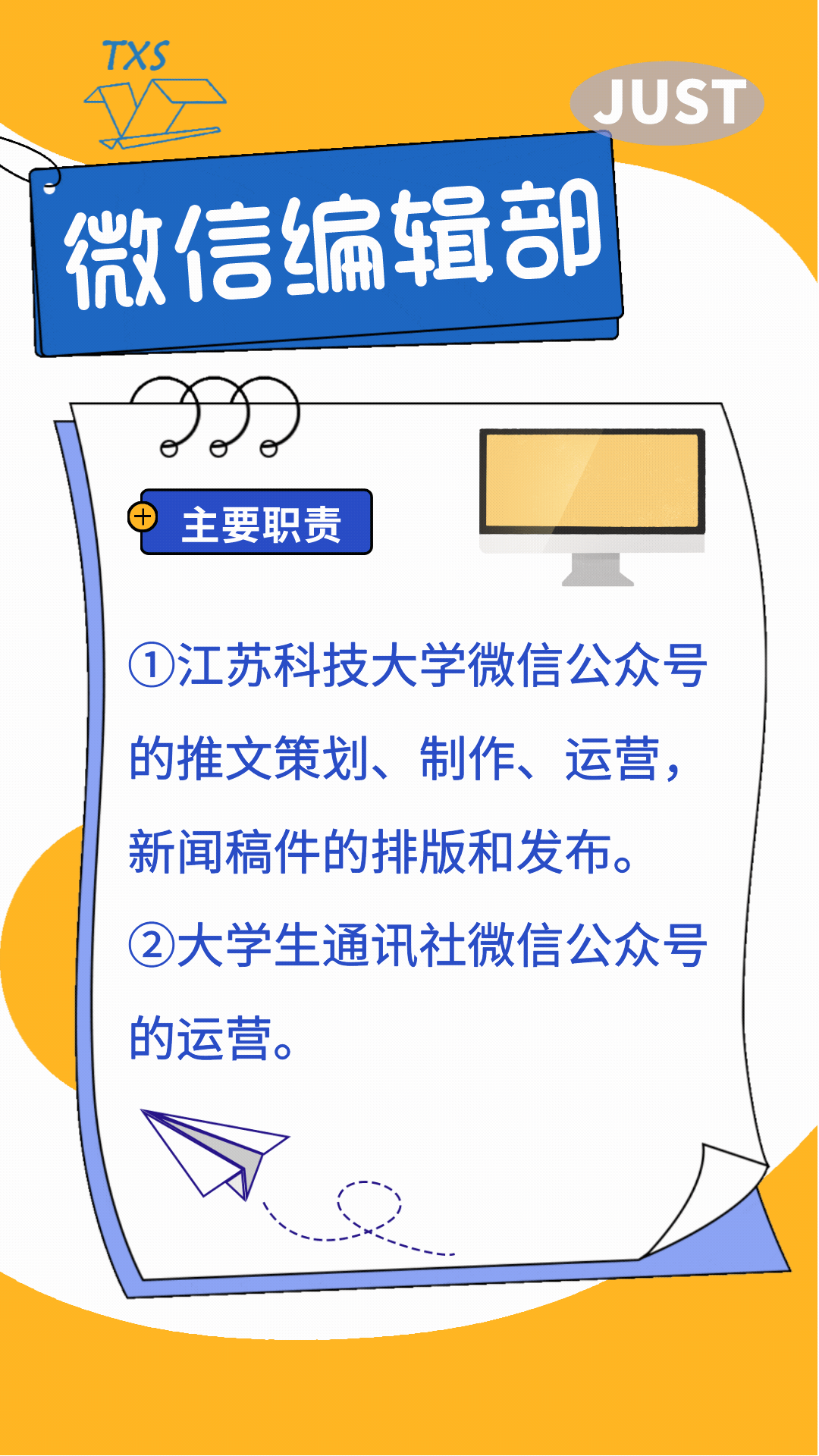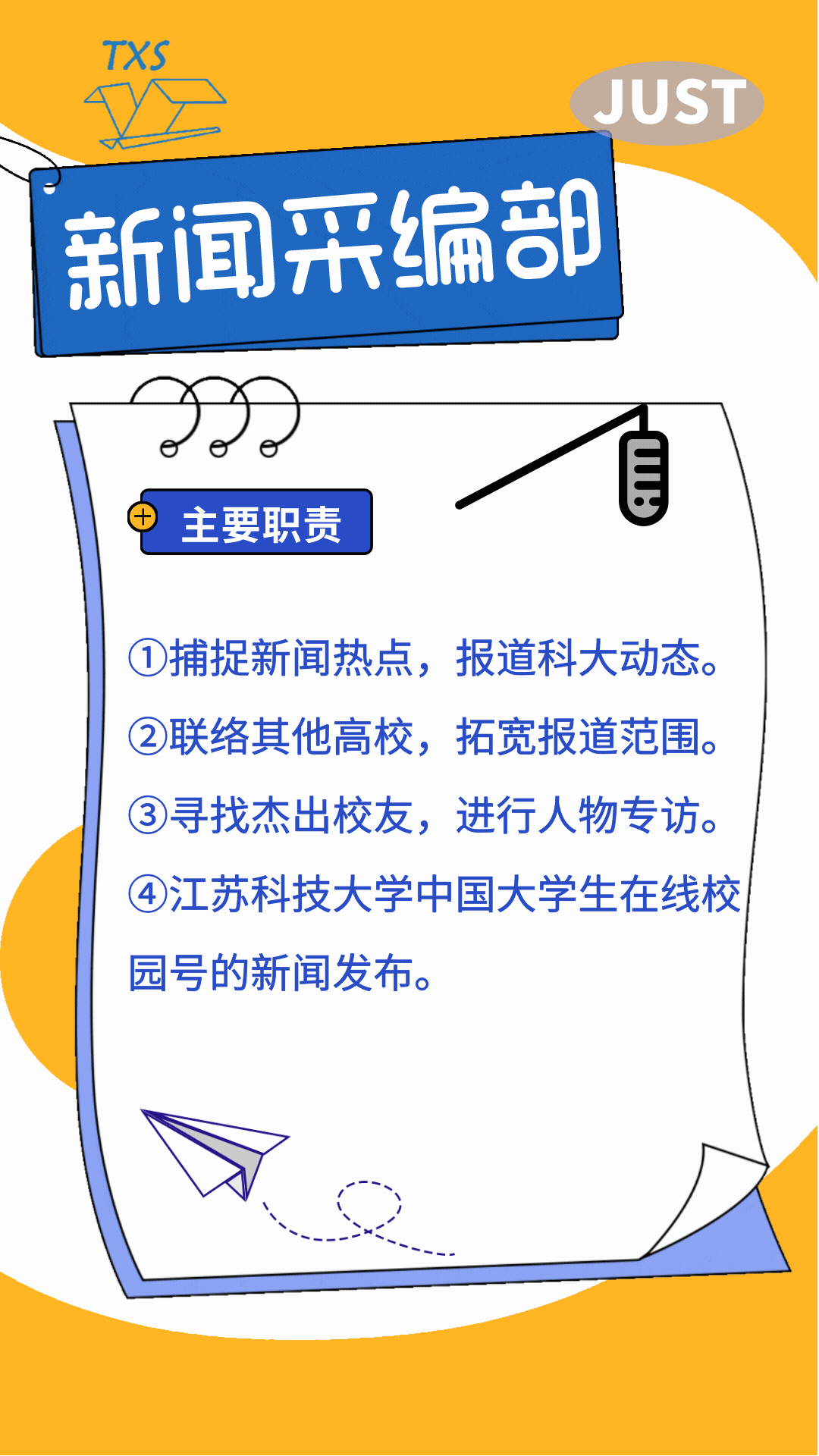 大学生通讯社平台——江苏科技大学微博协会、JUST大学生通讯社微信公众号及QQ平台、微博平台