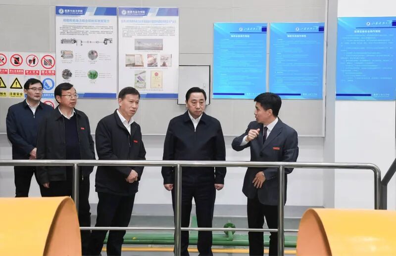 马明龙书记一行首先来到能源与动力学院重装实验楼,参观了船舱综合实训实验室、柴油机拆装实训室、发动机性能测试实验室、轮机综合机舱实验室和振动噪声实验室,观看了氢能源船舶演示、舰船风机盘管实验、消声减震实验等项目,对我校积极承担和参与国家重大科研项目的研发,在突破“卡脖子”技术问题等方面所作的努力予以肯定。马书记与在场师生开展互动交流,勉励学生为中国式现代化贡献青春力量。
