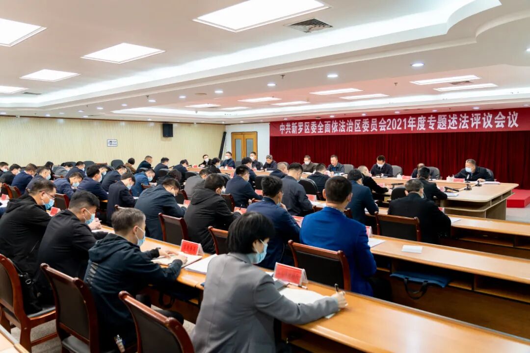 张锋强调,要提高政治站位,坚决扛起法治新罗建设政治责任。进一步压紧压实党政主要负责人推进法治建设第一责任人职责,营造办事依法、遇事找法、解决问题用法、化解矛盾靠法的良好法治氛围,为创造和谐稳定的社会提供良好环境。要聚焦重点任务,扎实推进法治新罗建设取得实效。以法治引领发展、推进治理、保障民生,紧紧围绕省、市党代会和省、市“两会”的目标任务,紧盯打造宜居宜业有温度的“首善之区”,坚持依法治区、依法执政、依法行政共同推进,坚持法治新罗、法治政府、法治社会一体建设,严格规范公正文明执法,进一步优化法治化营商环境,加强矛盾纠纷多元化解联动机制建设,推动更多法治力量向疏导端用力,实现“法理情”有机统一,助力新罗高质量发展。要强化考核评价,持续深化全面依法治区探索实践。继续深化专题述法机制这个有益探索,推动述法对象再拓展、述法形式再优化、述法效果再提升,切实将述法的成效转化为工作的成果,有力有序推进全面依法治区工作。