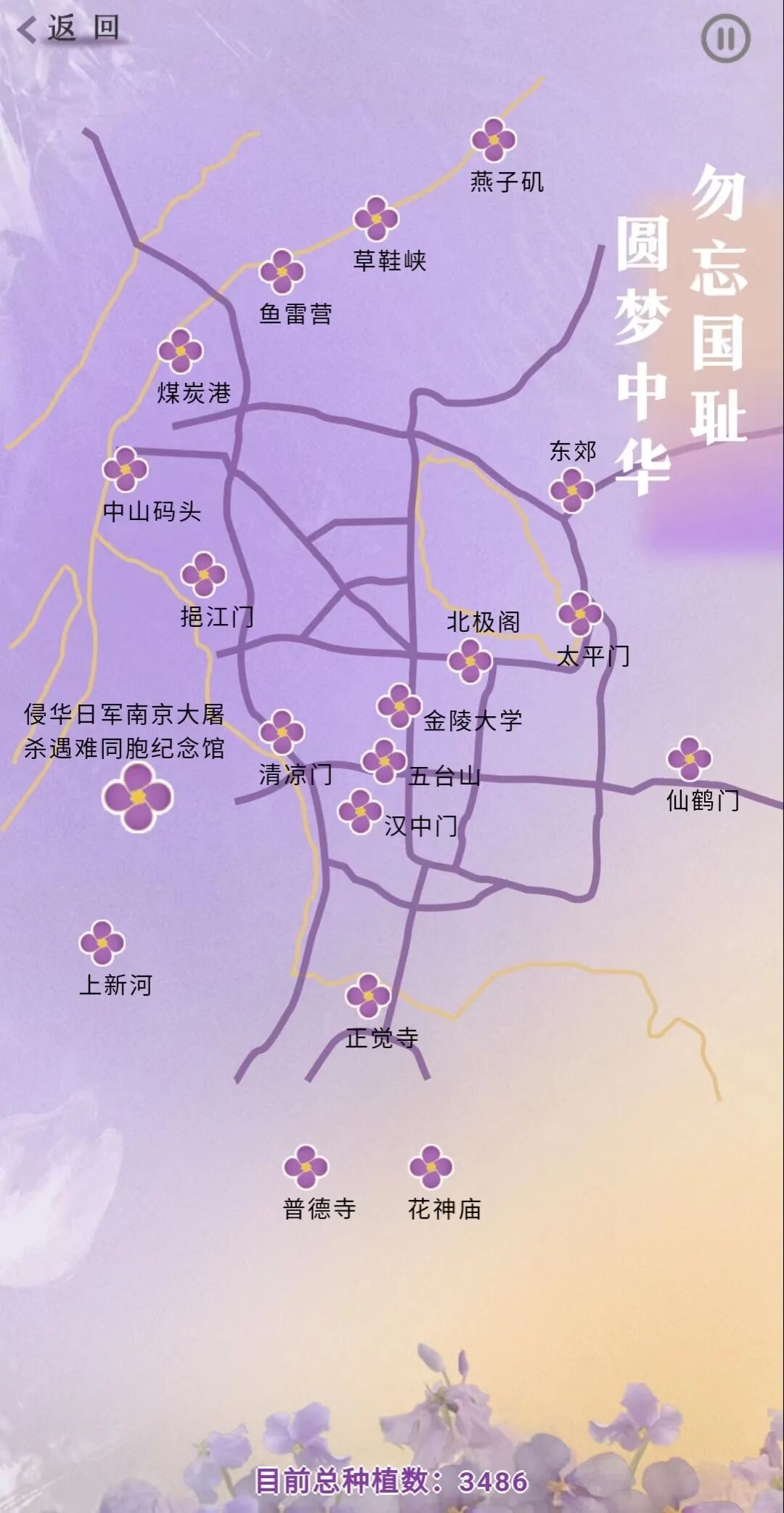 侵华日军南京大屠杀遇难同胞纪念馆、五台山、中山码头、太平门……在地图上选择播撒种子的地点,并进行播种,种植完成后,即可领取线上证书。