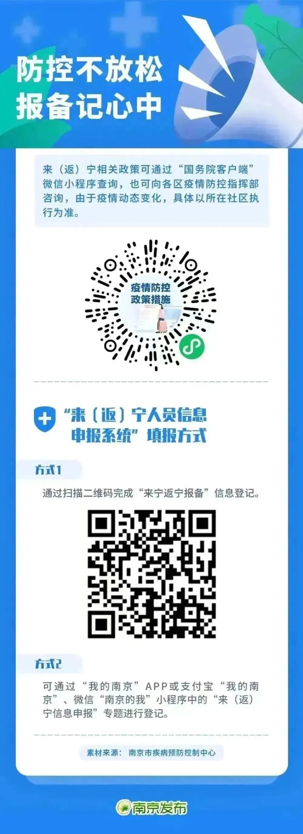 1. 请来(返)宁人员,提前通过“来(返)宁人员信息申报系统”登记信息,主动向所在单位、社区或入住酒店宾馆报备,配合落实健康管理措施。