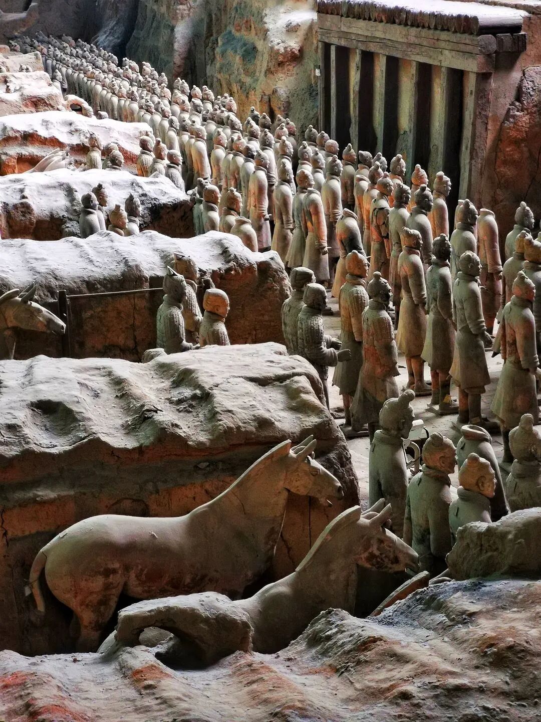 秦始皇陵及兵马俑直到1974年才被发现,这处考古遗址下面仍然有成千上万件的雕塑等待被发掘。秦始皇陵是第一位统一中国的皇帝秦始皇(殁于公元前210年)的陵墓,秦始皇葬于陵墓的中心,周围围绕着著名的陶俑。