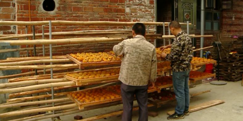 果农们介绍说,通常柿子成熟后,天气好的时候,10天即可完成柿饼的晾晒。天气不好,就需要半个月时间。除了自然晾晒,他们还会通过使用电扇、熏硫等方式,挥发水分延长柿饼的保存期限。