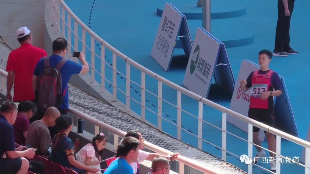 在体校甲组1500米赛场,刘德助代表广西队出战,这是广西田径队在今天的又一个夺金点。由于受到感冒困扰,刘德助拼尽全力仍然在最后100米冲刺中憾负辽宁选手,以3分55秒37的成绩获得银牌。