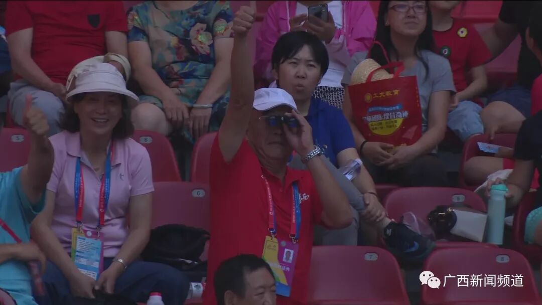 看台上廖羽的教练,是二青会广西田径队教练员李善增,现年65岁的李指导多年来一直耕耘于田径青训领域,对于弟子今天的表现,李指导非常满意,频频在看台上竖起大拇指。夺得金牌的廖羽也把最多的感谢送给了自己的恩师。