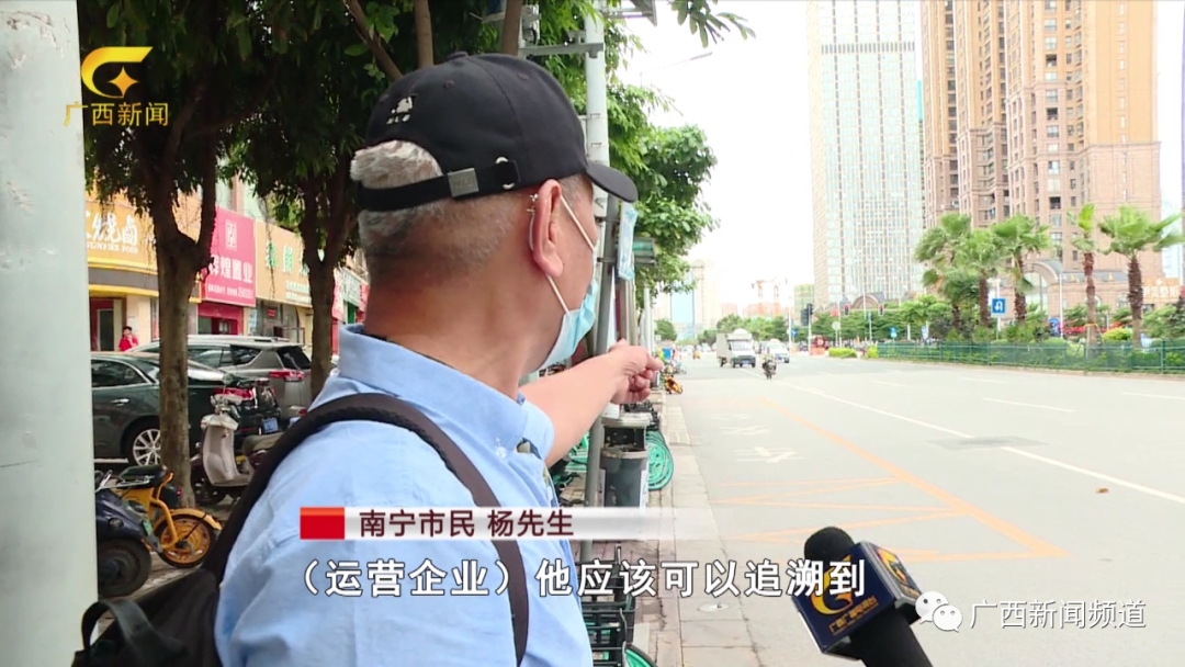 南宁市民 杨先生:像这样子乱停放的,运营企业他应该可以追溯到上一个骑车者,对不对,你就罚他。我觉得是,规规矩矩停车,下一个人用也方便。