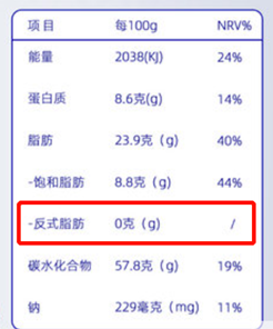在这里要提醒一下大家,即使你买的代可可脂巧克力包装上的营养成分表写着“0反式脂肪酸”,也不一定就是一点都没有。