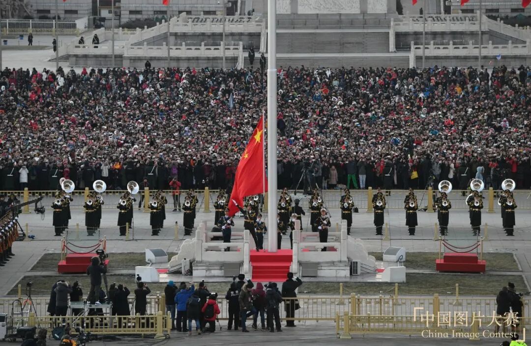 第二届中国图片大赛典藏银奖作品 《人民解放军首次执行升国旗任务》冯凯旋摄到天安门广场看升旗,是每个中国人独有的浪漫。来自全国各地的人们汇聚在一起,见证这庄严隆重的仪式,共同迎接清晨的第一缕阳光。庄严的国旗下,是祖国的目光,更是人民的期盼。当国歌响起的那一刻,所有等待都值得了!何其有幸,我是中国人!2019年2月12日