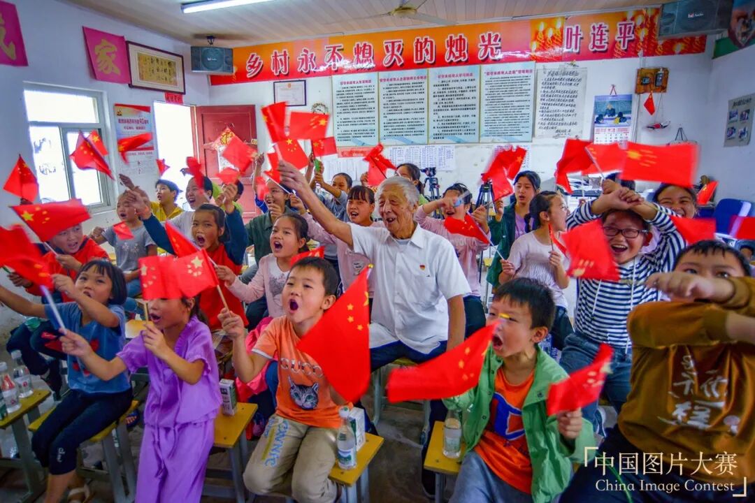 第五届中国图片大赛优秀奖作品 《不灭的烛光》秦祖泉摄“90后”退休教师叶连平自掏腰包办“留守未成年人之家”,20多年没有收过一分钱,义务辅导留守儿童,花光30余万元积蓄。他在与时间赛跑,他说“最后一口气要在讲台上呼出”。新中国成立70周年这天,叶连平和留守儿童一起观看“大阅兵”的盛况。一个个充满朝气的脸庞,挥舞着手中的国旗,心中按捺不住的激动!第二届中国图片大赛典藏银奖作品 《奥运火炬跨越珠峰》罗布占堆摄