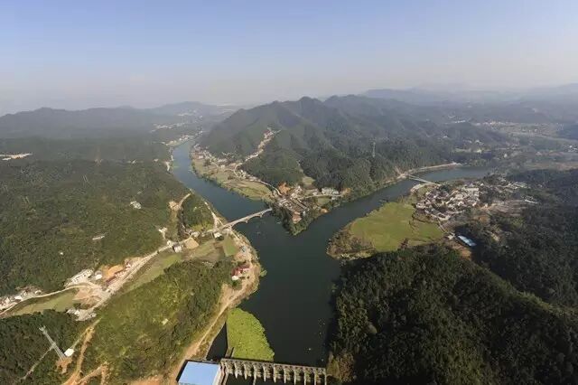 笔者站在双江口交汇处远望,山峦延绵重叠,但层次分明。随着距离的延长,山的黛青色也在递减。更远处则灰蒙蒙的,似乎与天上的淡云融为一体;浏阳河在脚下浅吟低唱,静静流淌的河水在崇山峻岭之间划出一道优美的弧线。