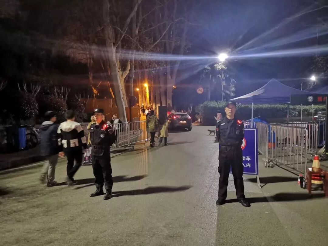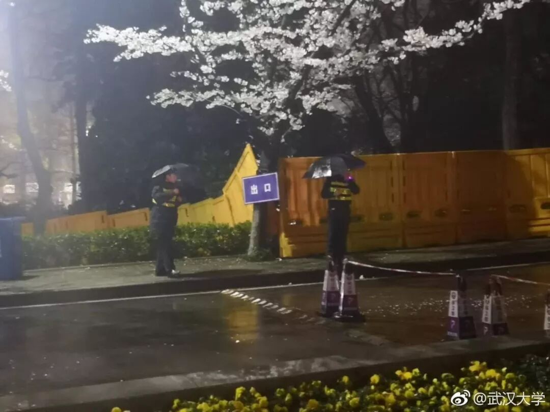 白天的校园,游人如织,珞樱缤纷;当夜晚来临,保卫部的工作人员依然坚守岗位,守护着每一棵樱花树。